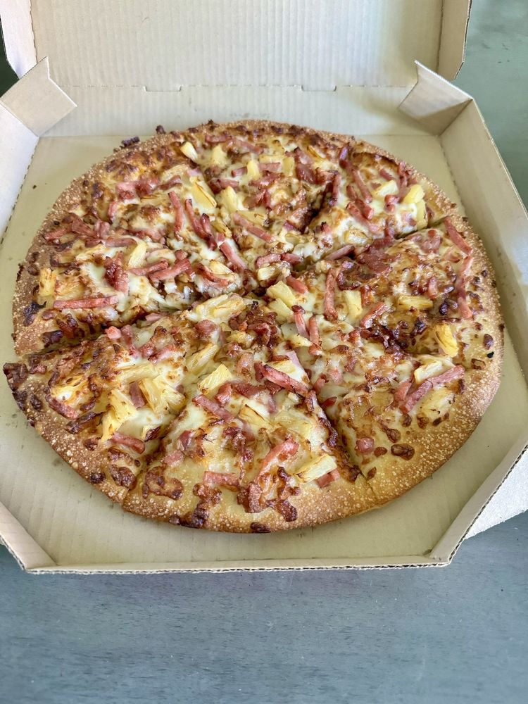Give your taste buds a tropical vacation with this amped up Hawaiian pizza. It's got tasty chicken, ham, pineapple AND green peppers.